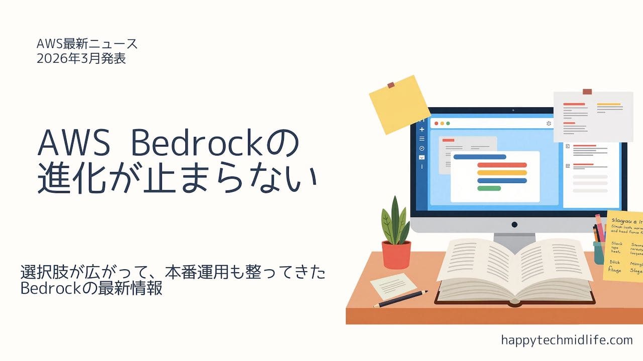 2026年3月、Amazon Bedrockのアップデートが立て続けに発表されました。新しいAIモデルの追加リージョン拡大AIエージェントの評価機能バリエーション豊かな内容です。Bedrockって最近よく聞くけど、結局なんなの?という方のた...